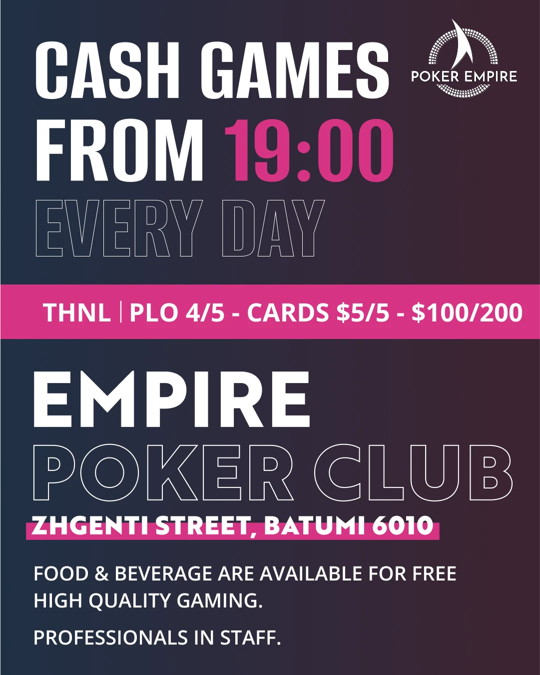 Empire Poker Club | Batumi, Every night NLTH/PLO(4/5 cards) | $5/5 - $100/200